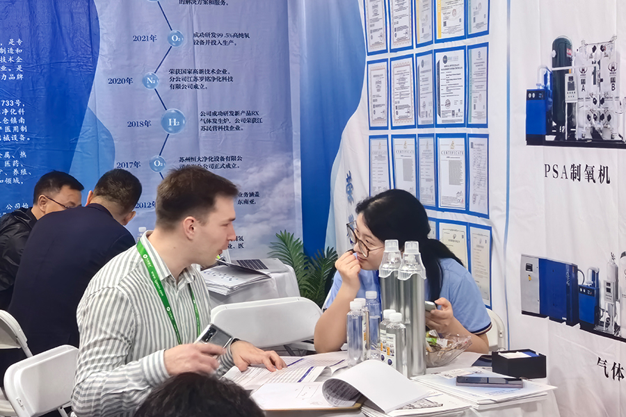 Z obrázků na místě je zřejmé, že náš stánek prominentně zobrazuje obrázky naší rozmanité škály zařízení, včetně generátorů kyslíku, generátorů dusíku, generátorů kyslíku s vysokou čistotou, jednotek čištění plynu a vyplňující zařízení. Kromě toho jsou na výstavě různá vyznamenání a kvalifikace, které drží Jiangsu Luoming. Náš specializovaný prodejní tým, který se vrhne na energii, využívá své znalosti v hloubce, aby zavedl naše řezné - okrajové vybavení hostující klientele.