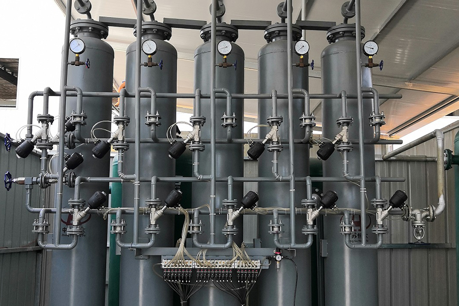 Surový plyn jde do sady adsorbrů a je adsorbován a sušen a poslán přes filtr do bodu použití. Vezměte stopové množství produktového plynu a regenerujte adsorbované nasycené molekulární síta v jiné sadě adsorbrů při teplotě 250 ° C-300 ° C. Dvě sady adsorbrů pracují a regenerace se provádějí střídavě. Lze získat kontinuální a stabilní produktový plyn.